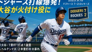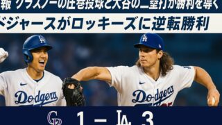 試合 【速報】グラスノーの圧巻投球と大谷の二塁打が勝利を導く! ドジャースがロッキーズに逆転勝利 ドジャースは投手戦を制し、ロッキーズに3-1で勝利。大谷選手も貴重な二塁打を放ち、逆転勝利に貢献。チームは連勝を飾りました。 2025.09.09 試合