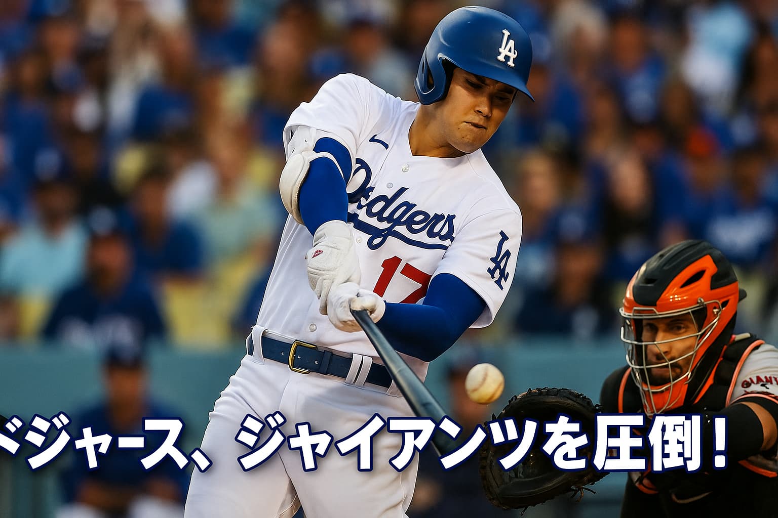 ロサンゼルス・ドジャースが、本拠地ドジャー・スタジアムで行われたサンフランシスコ・ジャイアンツとの一戦を10対2で快勝しました。先発のタイラー・グラスノー投手が7回2失点と好投し、打線はテオスカー・ヘルナンデス選手が4安打の大暴れを見せるなど、チーム一丸となってジャイアンツを圧倒。大谷翔平選手も執念の一打を放ち、勝利に貢献しました。